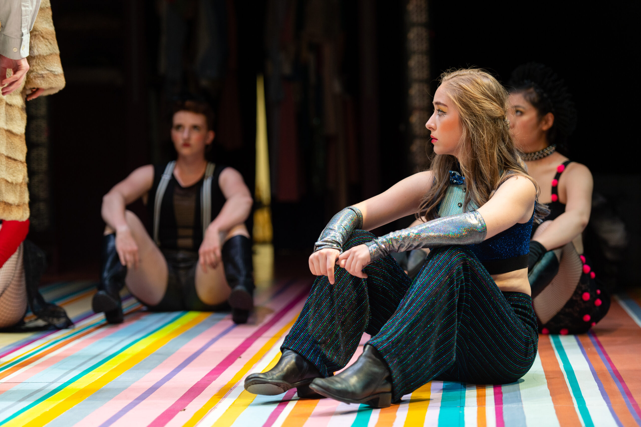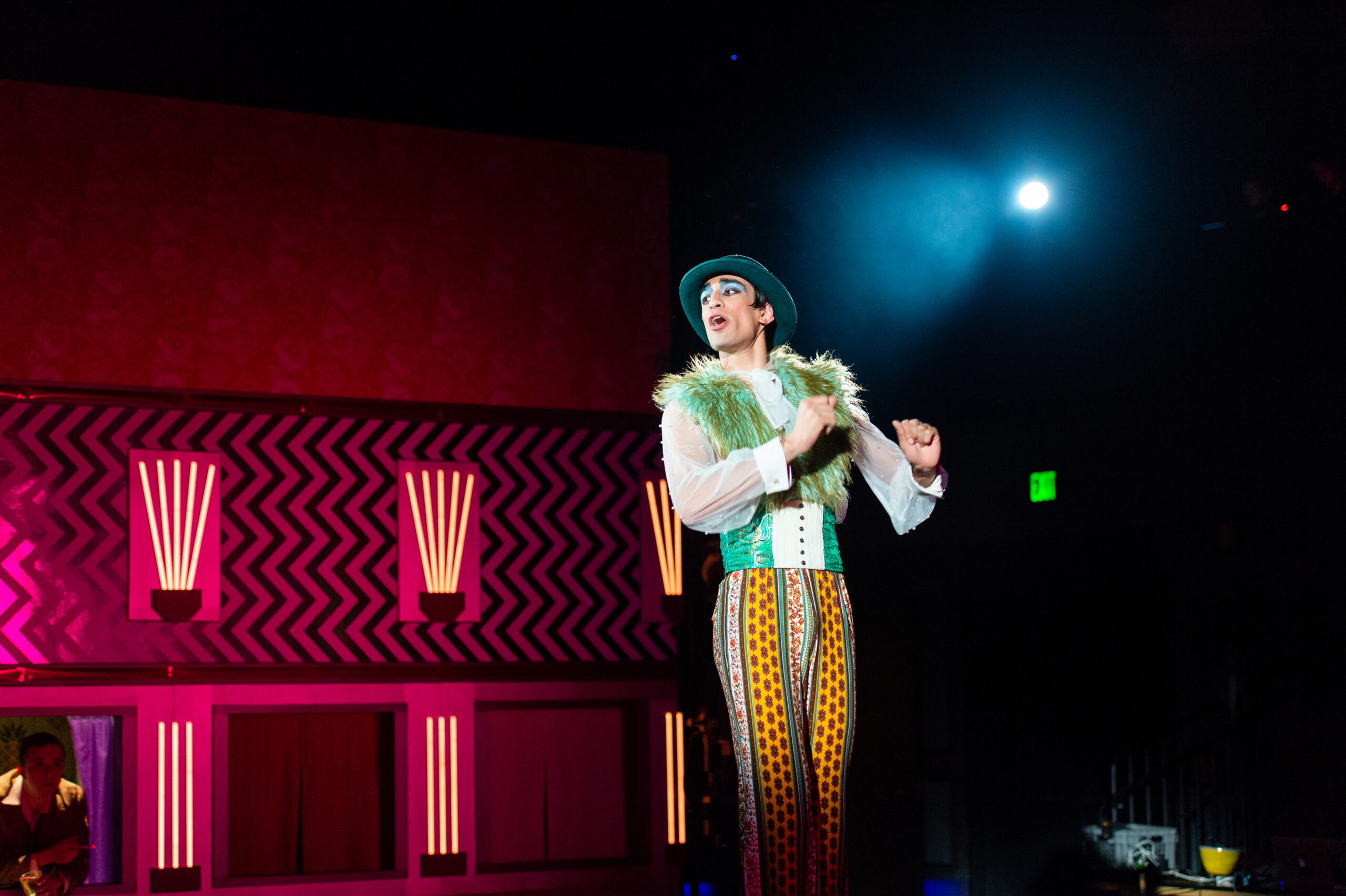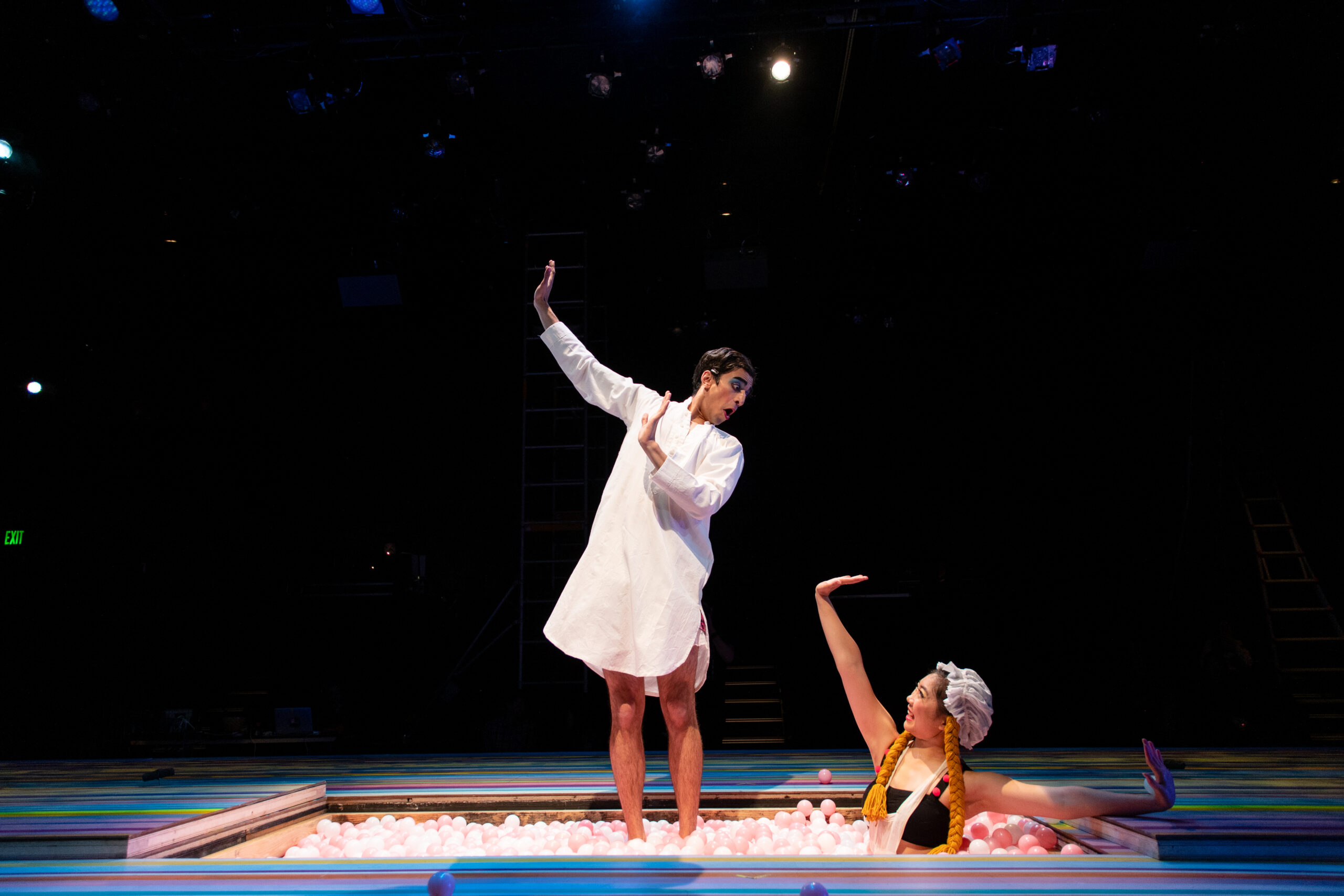 This Cabaret, directed by Erika Chong Shuch, zigzagged between pre-war-inspired costumes (designed by Connie Strayer) and glossy contemporary aesthetics, with a dynamic set that included functional swings and a hidden ball pit.